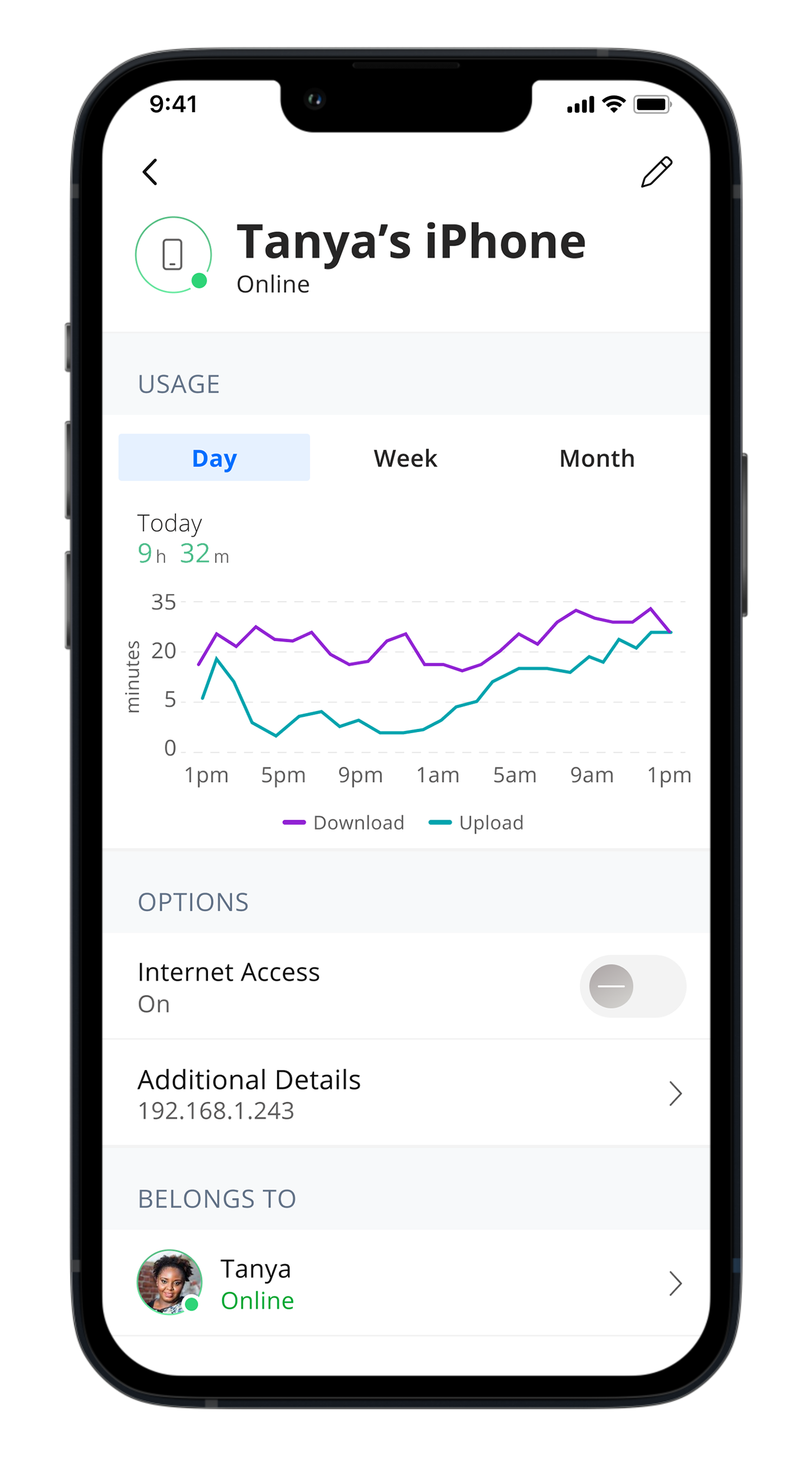 Set time limits for how long a user can access Wi-Fi, applications and websites.