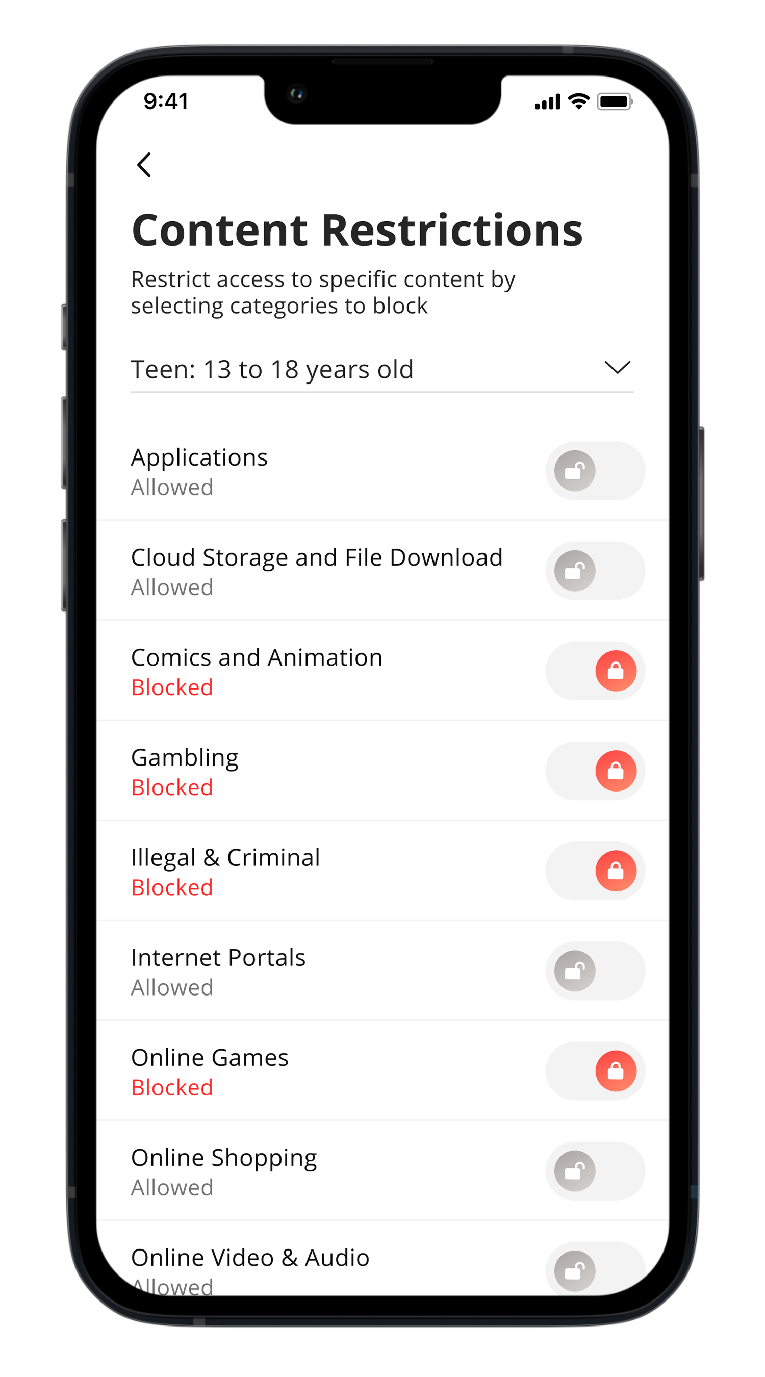 Set filters to block access to websites, content categories, and apps for people or devices on your network.